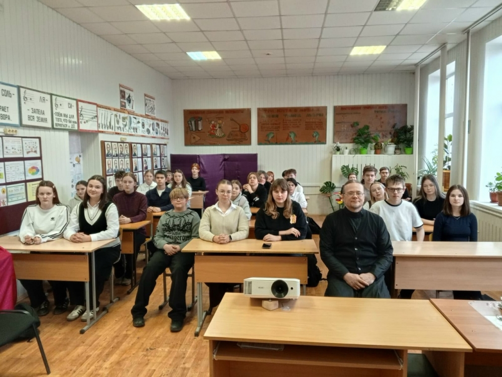 В конце беседы, которая продлилась более часа, о. Артемий Кайгородов поблагодарил учеников, а так же педагога школы Артемьеву Наталью Николаевну, за интересное и искреннее общение.