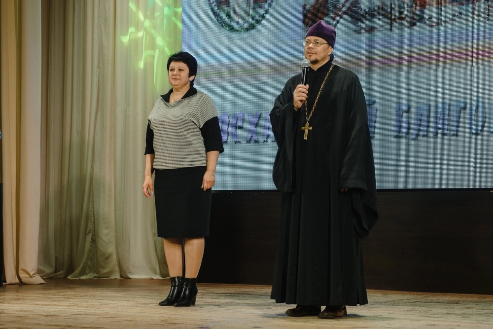 В зрительном зале Центрального Дома культуры состоялся праздничный концерт, который традиционно открылся праздничным тропарем в исполнении певчих клироса Свято-Никольского храма.