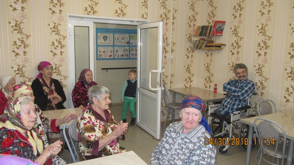 Тридцатого апреля 2018 года старшие и младшие ученики Воскресной школы Свято-Никольского храма вместе с настоятелем храма иереем Артемием Кайгородовым и матушкой Еленой посетили Дом престарелых в селе Тарутино Чесменского района.